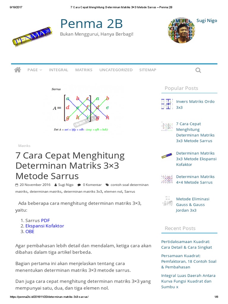 Menghitung Determinan Matriks 3x3 Dengan Metode Sarrus Ilmu Hitung