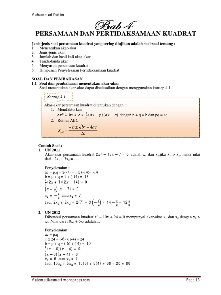 4 Persamaan Dan Pertidaksamaan Kuadrat
