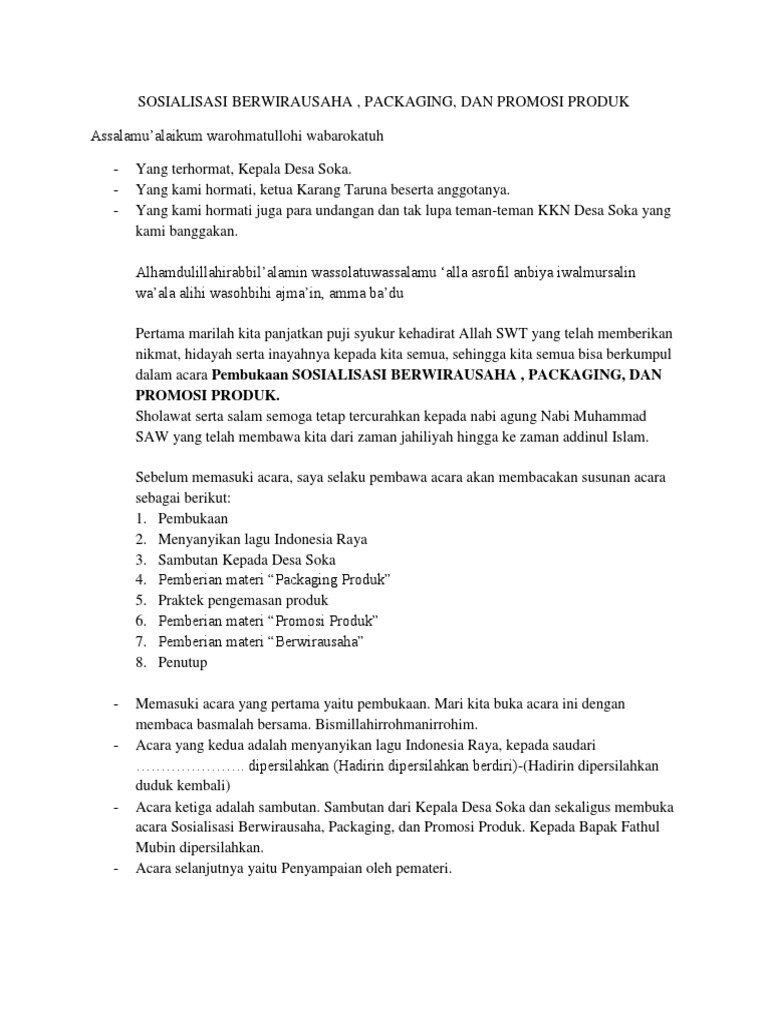 Teks Mc Sosialisasi Packaging Dan Promosi Produk